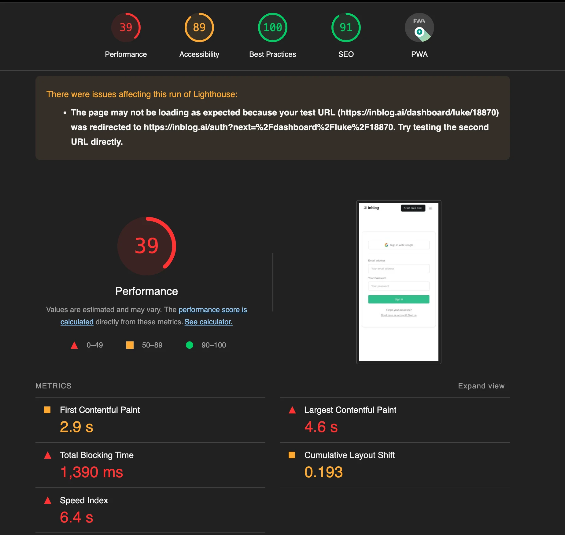 구글 라이트하우스 리포트를 확인할 수 있다.
